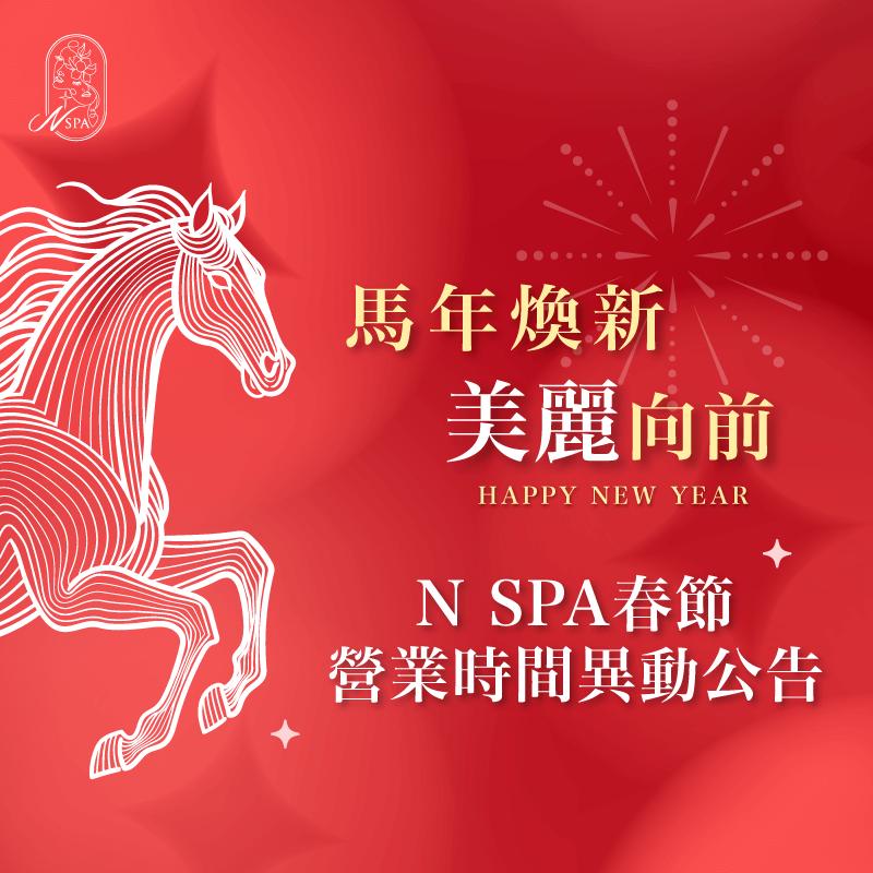 N SPA女性美體美容館春節期間調整營業時間,除夕至初五店休,建議提前預約年後療程。